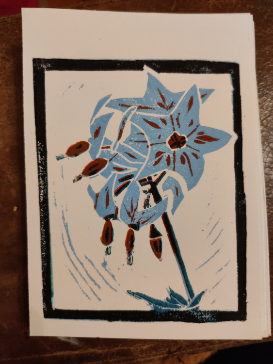 I’ve been trying larger prints recently which have their own challenges. Mainly around consistency of the print quality. Currently I use water based inks. I’m going to try an oil based black ink and see if the results are different. I’ve also learnt that some types if lino benefit from sanding before use as they can have a waterproof coating. This is the original hessian lino (grey colour) which has become my preferance as it is easier to get fine details. I will update the gallery with examples when I’m happy with them. The instagram feed will show works in progress.